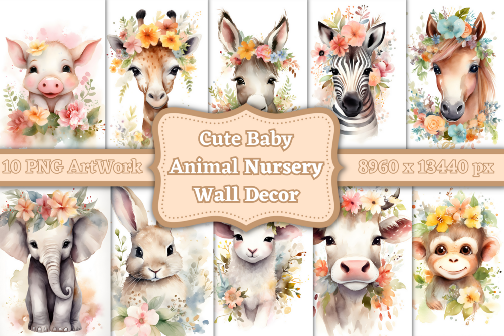 Cute Baby Animal Nursery Wall Decor is a charming digital product featuring a collection of 10 adorable baby animal artworks. Each artwork is 8960 x 13440 pixels in size, making them perfect for printing and displaying in a nursery or child's room.